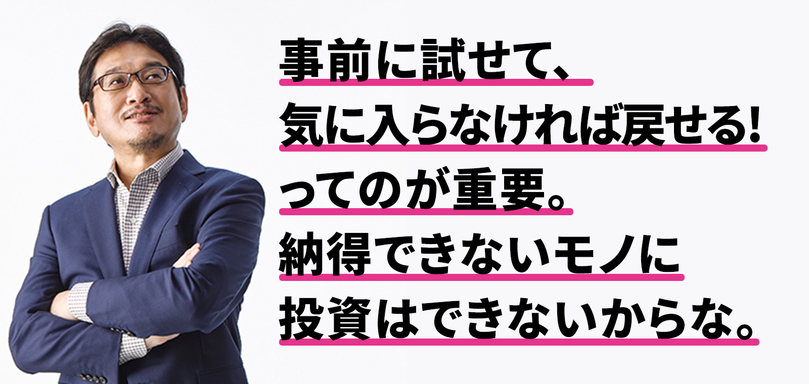 スヴェンソン」のサービスは購入前提ではありません。 そのため、万一ご契約後に気に入らなければ、翌月に「解約」いただけます。 お使いになりたい分だけご契約を継続いただける「マンスリープラン」なら、月単位でいつでも使用を中止できる ので最小限の投資額でご判断、低リスクでご契約いただけます。