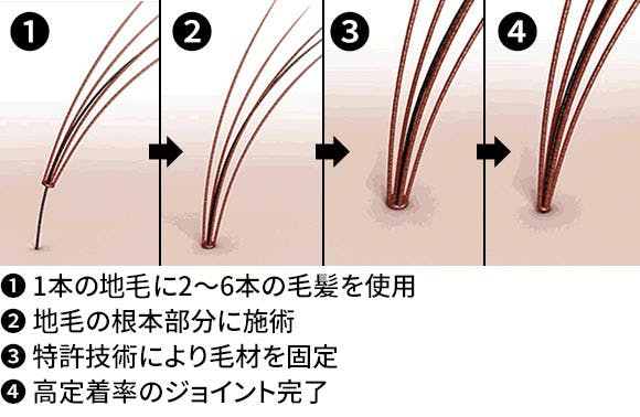 特許技術により地毛に負担をかけず、自然なボリューム感を再現。
