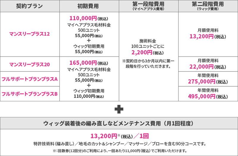 「マイへアプラス」にて毛量が増えた段階から「ウィッグ増毛」への自然な移行ができるように製品をご用意いたします。