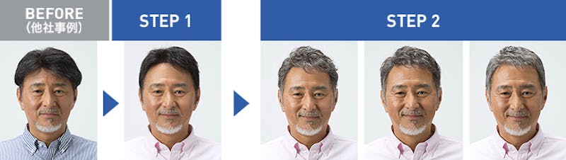 また、「なりたい髪型」を実現できるスヴェンソンなら、下の写真のように毛量・白髪の増減も自由自在。そのため、年齢に応じた髪型の変化にもしっかりと対応できるのだ。