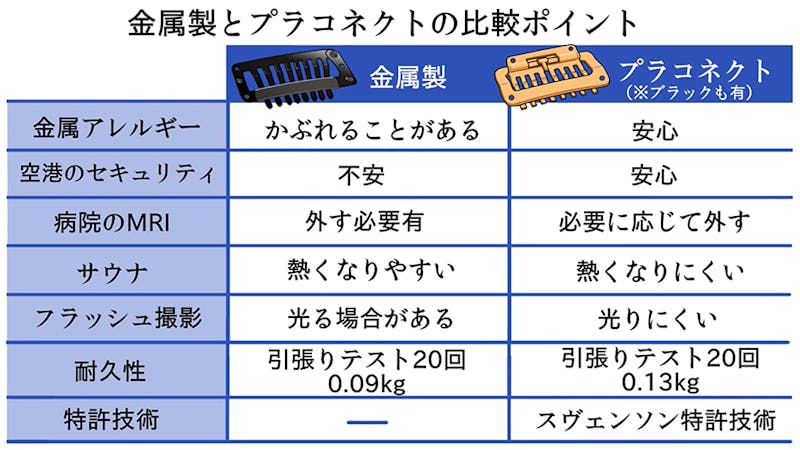 留め具の種類 金属製と樹脂製(プラコネクト)